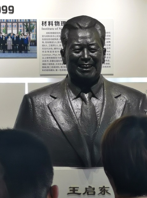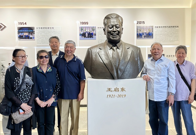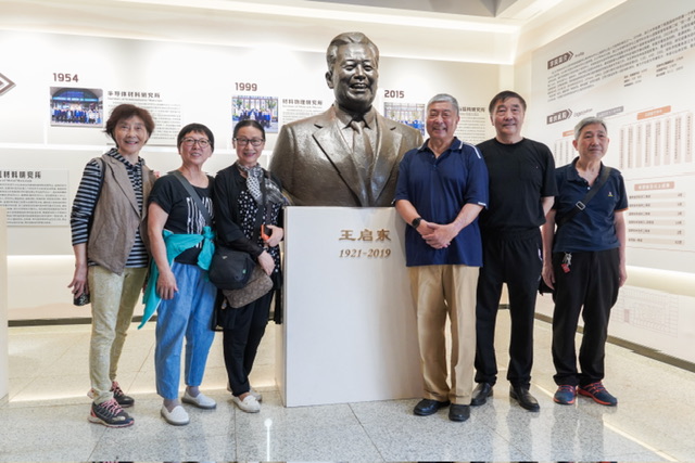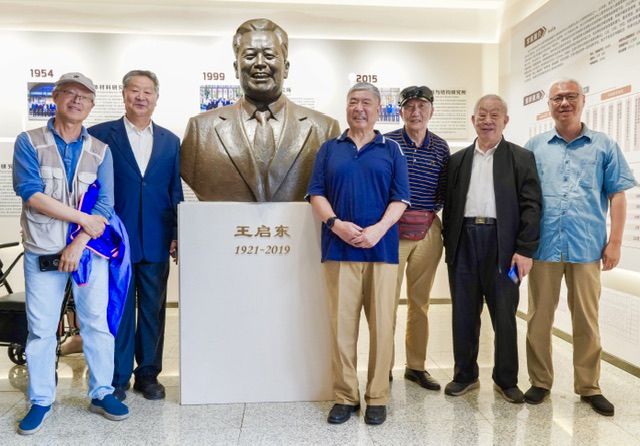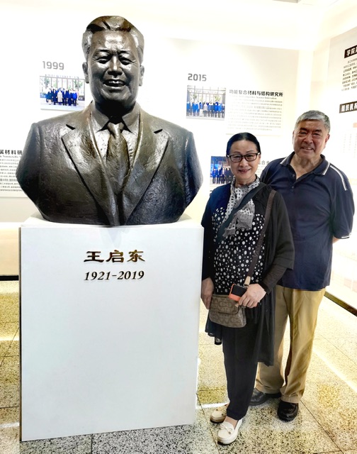 爸爸王启东是材料学院的创始人,并担任了首届的系主任。学院为记念爸爸对学院的贡献,给爸爸设立了铜像,并举行了铜像落成典礼。