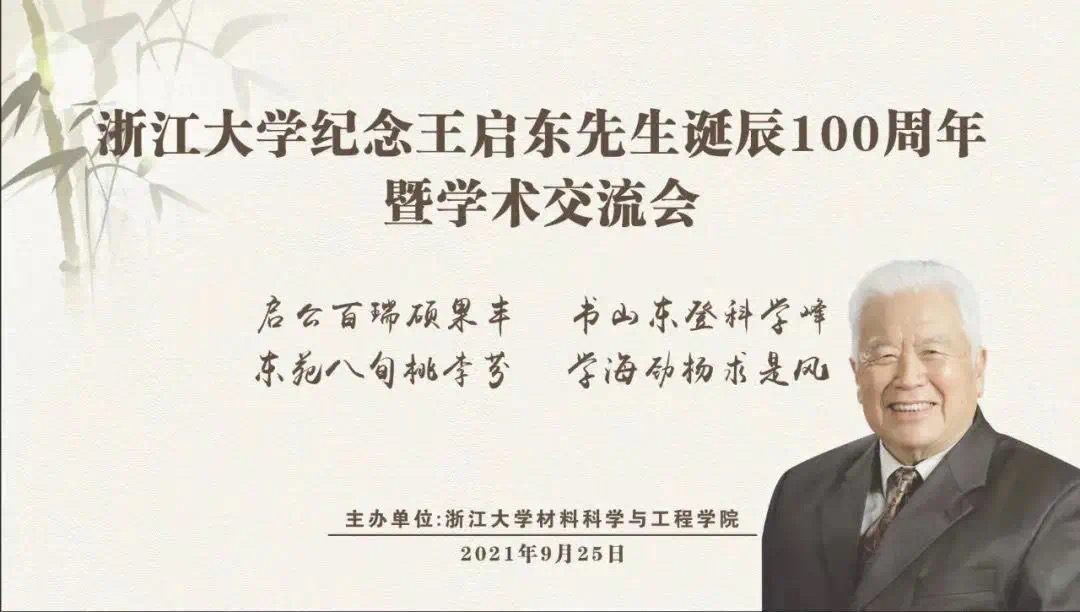 今天我们纪念王启东先生,就是要学习他胸怀祖国、赤忱报国的高尚情怀。王启东先生出身书香世家,青年求学时正值中华民族深受苦难的抗日战争时期,目睹了国家积弱积贫的现状,从而激发了他矢志求学、救亡图存的坚定信念。新中国成立后,他积极响应祖国号召,毅然放弃美国优越条件,想方设法突破美国的禁令,历经千辛万苦回到祖国的怀抱。回国后,他在浙江大学任教数十载,始终坚持科教报国理想,始终把祖国需要作为毕生追求。“文革”结束后,他洞察国外科技发展趋势和国内发展需求,提出创建新型材料及功能材料相关学科的设想,被浙江大学党委采纳,并指派他负责材料科学与工程系的创建工作。经过40多年的发展,浙江大学材料学院已逐步成长为浙江大学“双一流”建设的重要力量,为国家材料学科的发展进步培养出一大批杰出人才,对我国乃至世界材料学科的进步产生了深远影响。王启东先生在《回首关山思万千》一文中曾写道,“回顾我一生90年,经历了战争与和平,见证了中国发展的曲折历程。我明白,我的命运和这个国家的命运紧紧相连。”