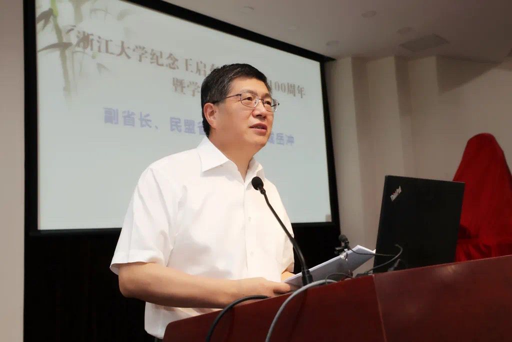 成岳冲在会上致辞,他指出,王启东先生是我国著名材料科学家、教育家,民盟浙江省委会的杰出领导,中国共产党的亲密朋友。曾担任全国人大常委会委员、省人大常委会副主任、民盟中央委员、民盟省委会主委、省科协主席、浙江大学副校长等职务。王启东先生的一生,是追求光明、矢志报国的一生,是无私奉献、不懈奋斗的一生。他的非凡业绩、杰出贡献和崇高风范,将永远铭记在我们心中,永远值得我们学习和怀念。