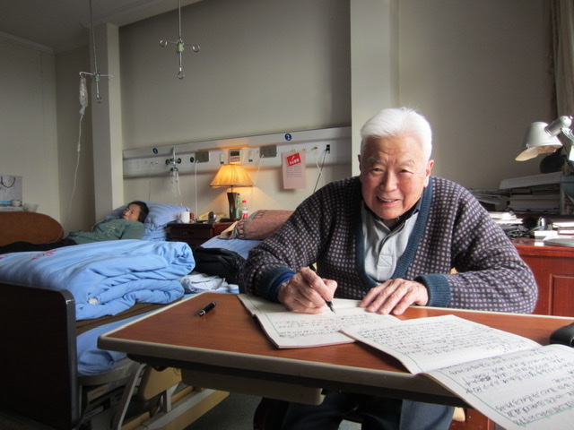 含着泪读完小妹的留言,深有感触:爸爸的一生是勤奋的一生,是努力学习的一生,是不断进取的一生。坚持不懈的学习,掌握更多的知识,不断的提高和完善自己是他的信念。活到老,学到老,是他一生的写照,即使是年过九旬,毎天我看到他时,他总是在学习,不论在家里还是医院,不论是在陪伴重病的妈妈还是自已在与病魔作斗争时,他总是手不释卷,不是在奋笔疾书就是用放大镜在阅读,他的成功来之不易,是他孜孜不倦的学习,永不放弃精神的结果。爸爸,您是我的榜样,我的楷模,高山仰止,景行行止。